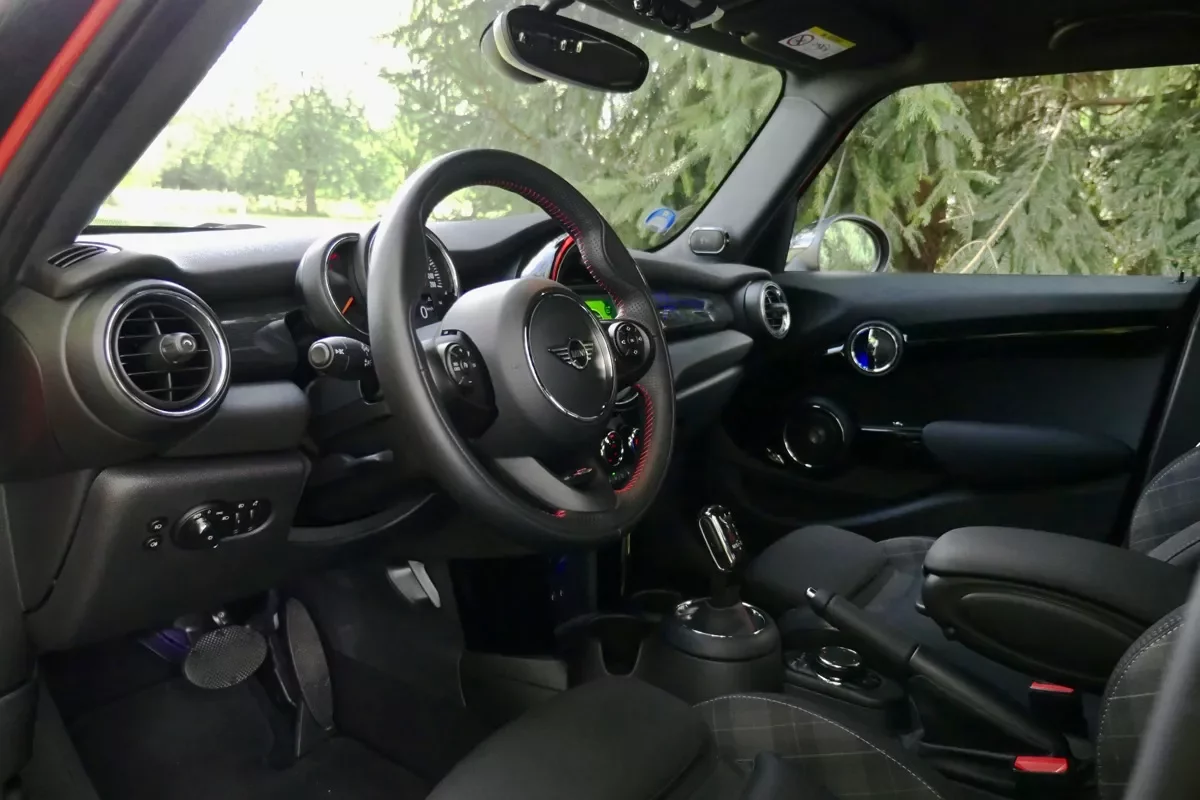 Ani uvnitř nečekejte divočinu – přepracované jsou pouze detaily spřažené s pětisedadlovou konverzí. Jde například o jiný ovladač oken nebo přídavný pás vzadu. Jinak se opět díváme na starého známého premianta s kulatými „budíky“ a diodovým prstencem okolo hlavních multimédií, který (jako u ostatních modelů) funguje například jako otáčkoměr, parkovací asistent, navigátor nebo jen tak ledabyle vytváří barevnou atmosféru. V autě nesmíte hledat prostorné kombi – tím je Mini Clubman – tohle „pětidvířko“ je pořád jenom praktičtější hatchback.