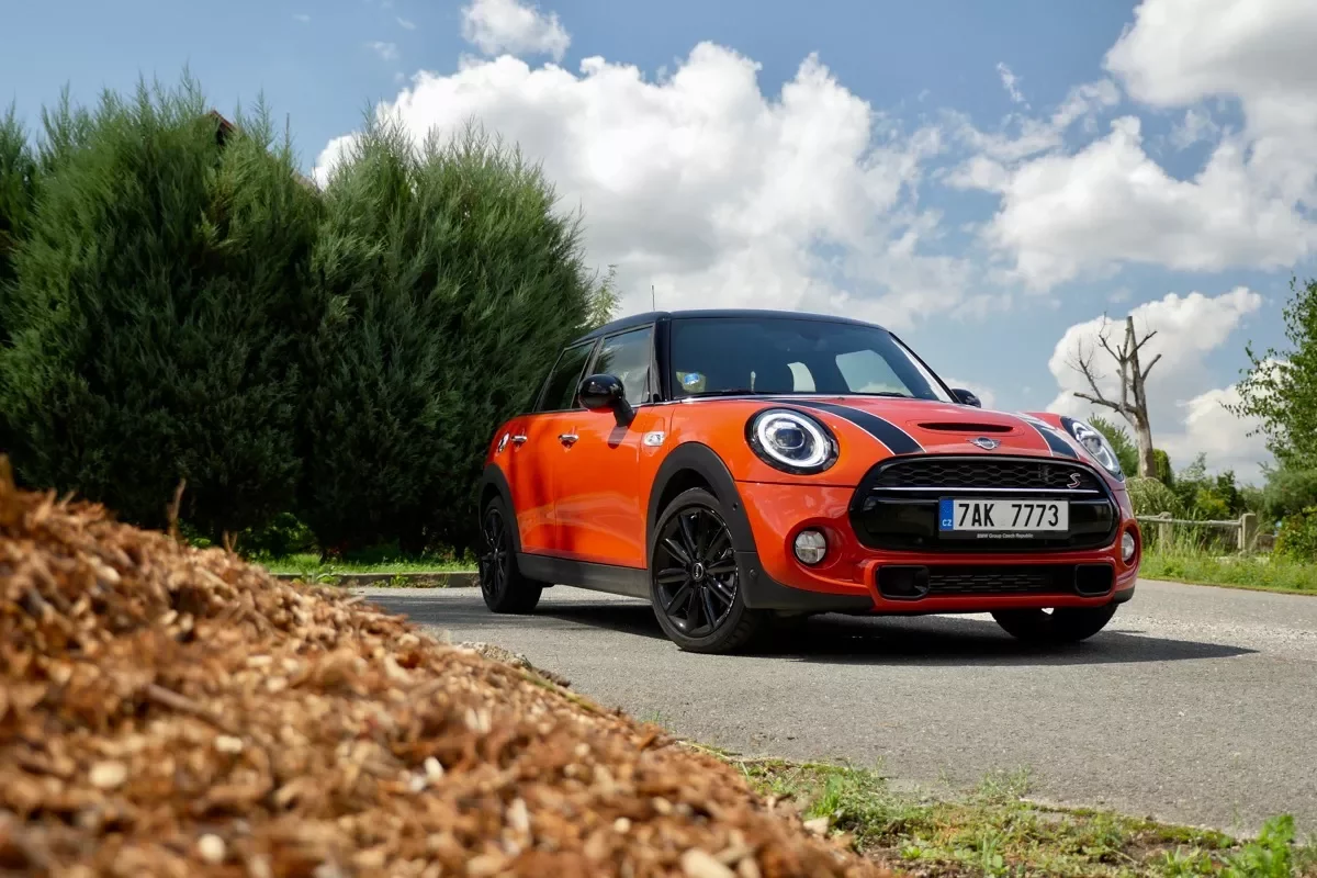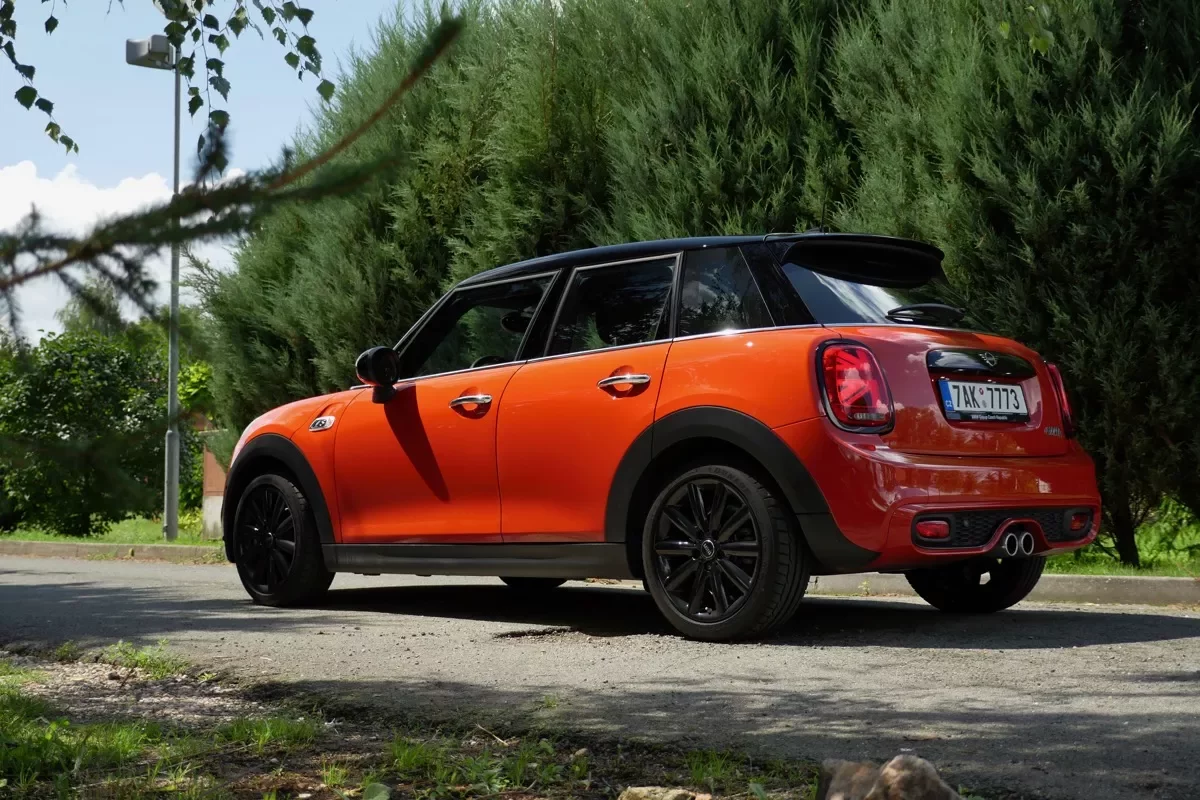 Mini Cooper S chce být především normálním autem, proto vlastně má pět dveří a kufr s objemem 278 litrů, respektive 941 litrů při sklopených zadních sedadlech. Neznamená to však, že by se líbivý přes čtyři metry dlouhý hatchback vzdal svého stylu, pouze k němu přidal trochu užitečných komponentů. Přední část je totožná s ostatními modely z rodiny – stále se tu nachází líbivé diodové kulatiny zajišťující osvětlení ve dne, otvor na kapotě pro přívod vzduchu k mezichladiči stlačeného vzduchu a muskulární přední nárazník s mlhovkami.