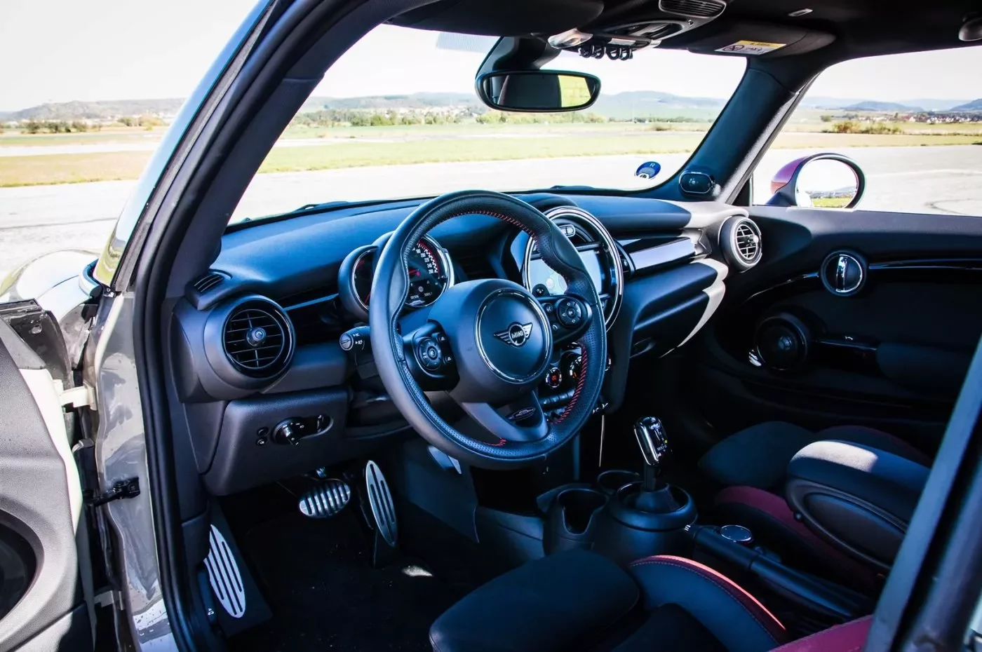 Současná generace Mini upusitla od nepraktického velkého rychloměru uprostřed palubní desky, kde jej nahradil displej přepracovaného infotainmentu iDrive. Rychloměr se přesunul na sloupek volantu, kde jej doplňuje malý otáčkoměr a stylový palivoměr. Startovací tlačítko v Mini nehledejte. Britové se na klasické řešení vykašlali a použili červenou startovací páčku, kterou umístili uprostřed spodní části palubní desky. Funguje obousměrně, takže nezáleží na tom, kterým směrem s ní pohybujete při startu i zhasínání motoru. Stejně je řešený i ovladač systému stop-start, vypínání protiprokluzu, přepínač jízdních režimů nebo ovládání stropního osvětlení.