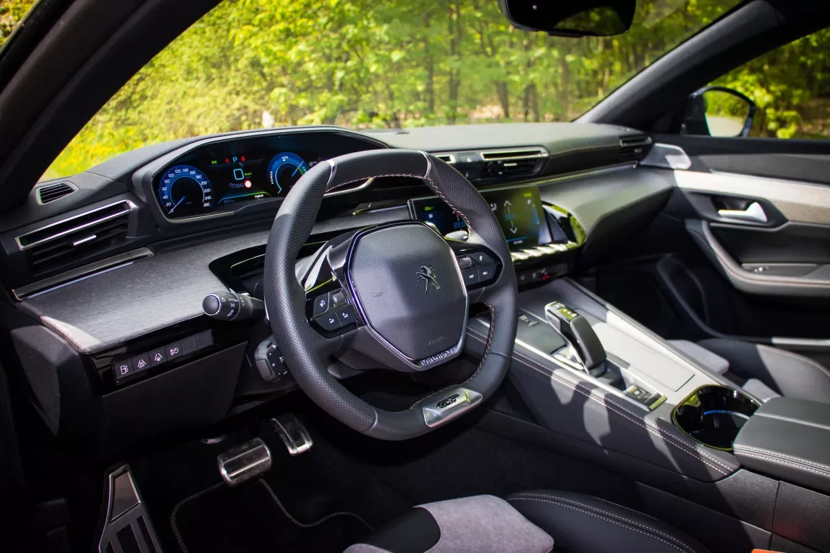 V interiéru se nám objevuje ten známý koncept i-Cockpitu. U některých modelů mi nebyl sympatický, protože jsem neviděla na spodní část displeje přístrojovky přes „hranatý“ volant, ale tady jsem si našla ideální polohu mého sezení a volantu tak, abych mohla mít v zorném poli vše, co potřebuji a vlastně musím uznat, že mi to nějak nevadilo.