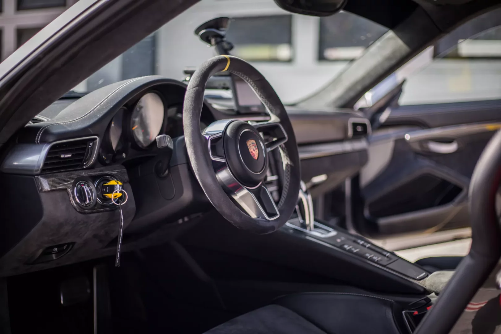 Zpátky ale za volant. Porsche 911 GT3 RS je uvnitř naprostou svatyní pro každého nadšeného řidiče. Zapadnete do fantastických skořepinových sedaček, do kterých se přitáhnete šestibodovými pásy, a do dlaní vám dokonale padne poměrně velký volant s akorát tenkým věncem obšívaným Alcantarou.