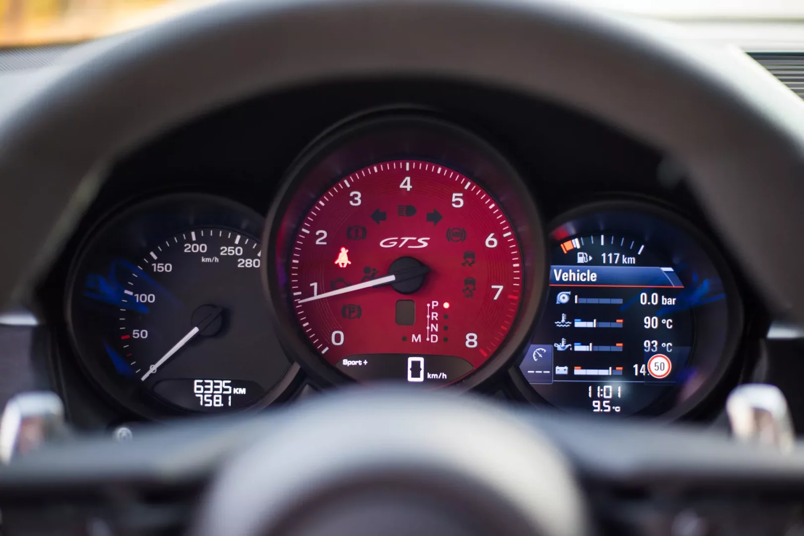 Docela dobře jeho rychlost demonstruje údaj 2,9 sekund, za které Macan GTS akceleruje z 80 na 120 km/h. Ano, platí to v případě příplatkového balíčku Sport Chrono Package, jehož přítomnost prozradí ty úžasné stopky uprostřed palubní desky. Z velké části analogové.