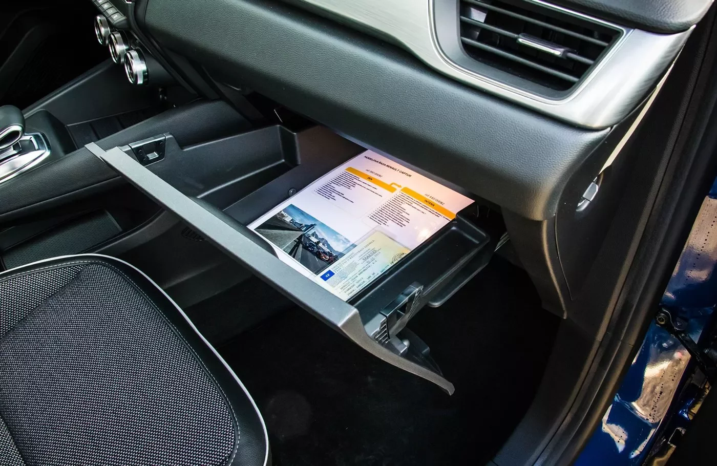Na první pohled se může zdát, že Captur není vybaven běžným ovládáním audiosystému, ale ovládání je schované pod volantem na sloupku řízení. Infotainment Easy Link s přehlednou minimalistickou grafikou podporuje propojení se službami Android Auto a Apple Car Play a ve standardní výbavě disponuje dotykovou obrazovkou o velikosti 7“. Větší svisle orientovaná obrazovka o rozměru 9,3“ je nabízena za příplatek.