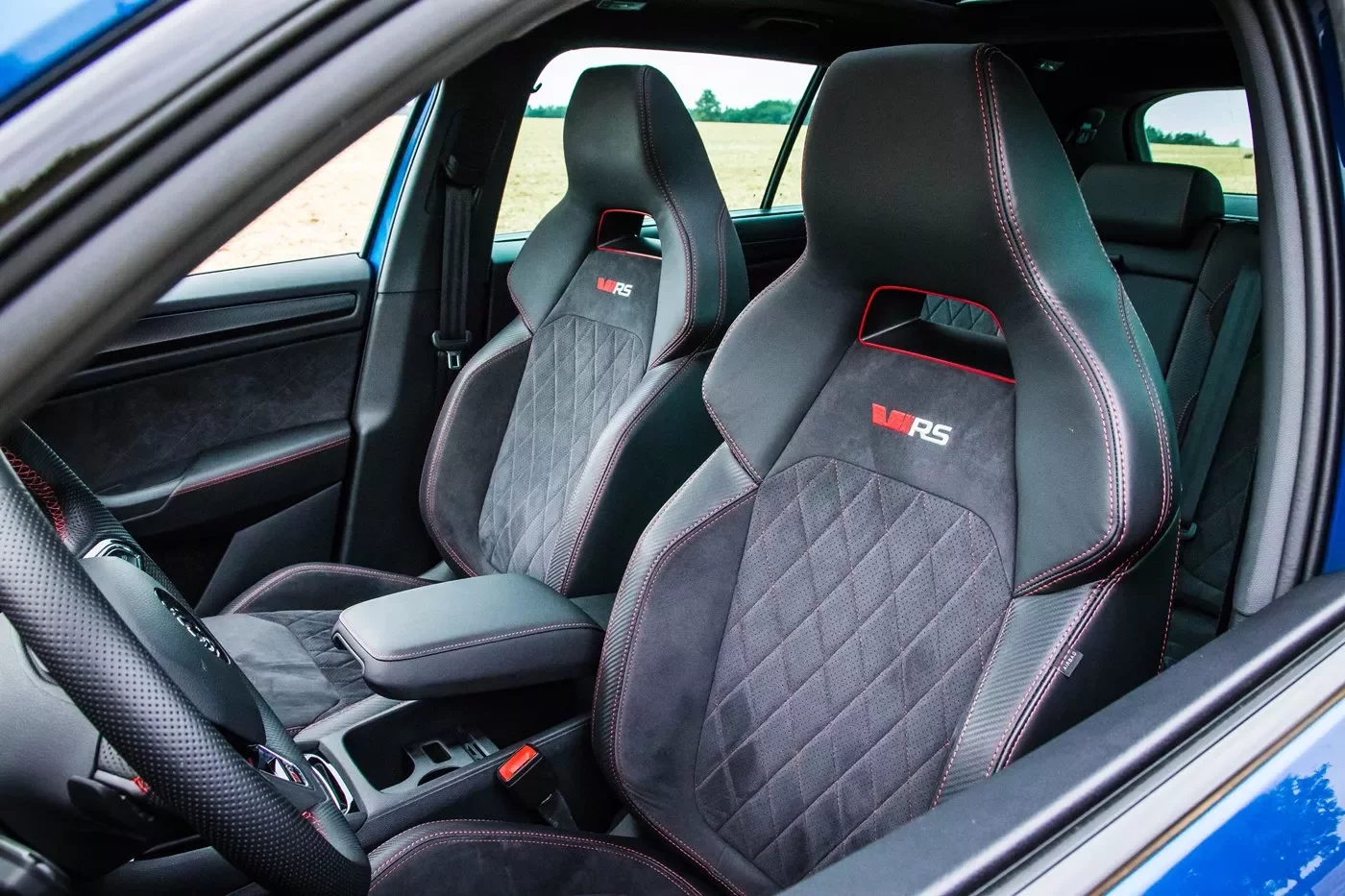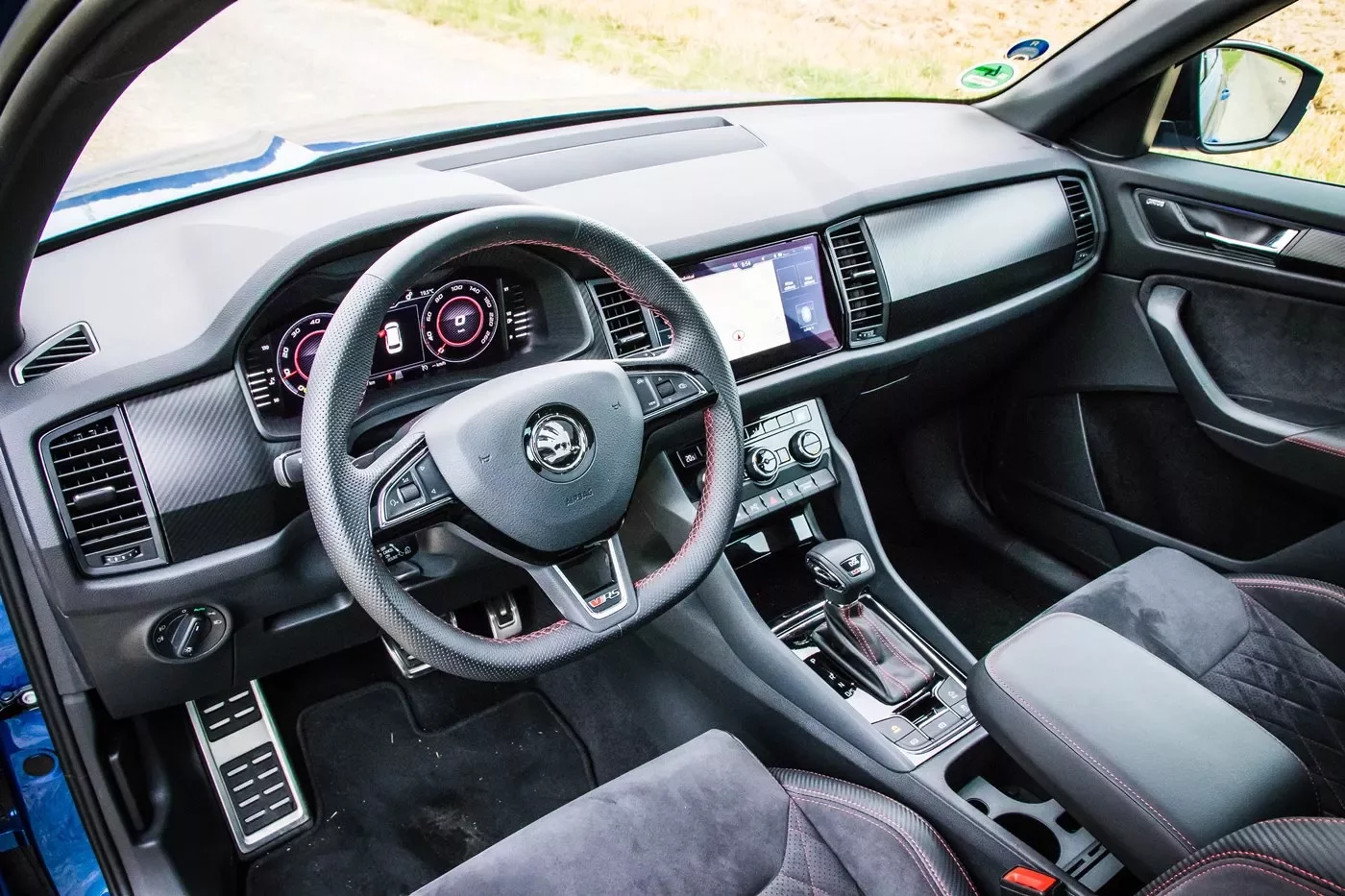 Kodiaq RS se stal prvním modelem nabídky, který je vybavený novým digitálním přístrojovým štítem. Displej vyniká dobrou čitelností na slunci a ostrou grafikou s černo-červeným schématem, ale jeho součástí není ukazatel teploty chladicí kapaliny motoru a palivoměr. Oba ukazatele jsou řešené bílými diodami. Druhou nejvýznamnější změnou v sedmimístném interiéru jsou nová sportovní přední sedadla, která jsou pohodlná a zajišťují dobrou oporu těla v zatáčkách. Zbytek zůstává při starém.