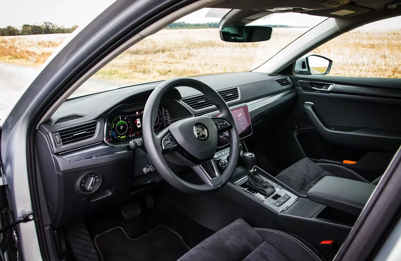 Ani uvnitř se neodehrálo mnoho viditelných změn. V interiéru se Superb iV odlišuje od normálních modelů ukazatelem stavu nabití akumulátoru namísto ukazatele chladicí kapaliny motoru a tlačítkem pro ovládání elektrického pohonu vedle voliče převodovky. Cílová skupina zákazníků „zeleného“ Superbu se příliš neliší od těch stávajících a zaměřuje se především na řidiče, kteří touží po ekologičtějším každodenním dojíždění do práce.