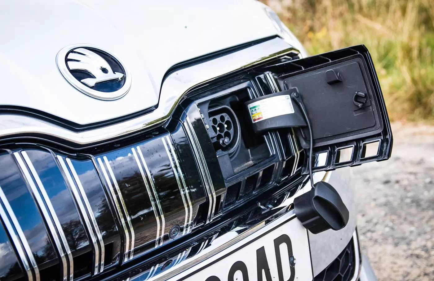 Vlajková loď značky se v roce 2019 představila i jako elektrifikovaná verze Superb iV s plug-in hybridním pohonem, který si čeští inženýři vypůjčili z Volkswagenu Passat GTE. Hybridní Superb s nejekologičtějším pohonem poznáte pouze podle drobných detailů. Nejvýraznější změnou v exteriéru je upravená maska chladiče s malými nasávacími otvory a ukrytým nabíjecím konektorem typu 2 (Mennekes). Zezadu elektrifikovaný Superb poznáte jen díky označení iV.