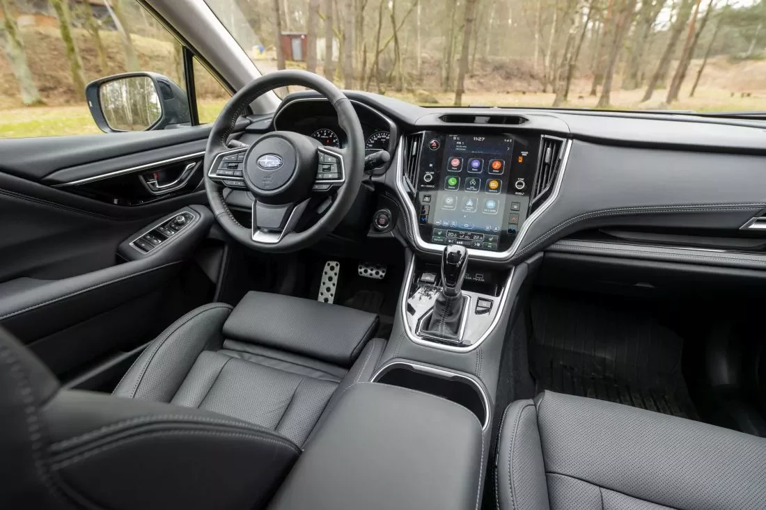 Uvnitř na posádku dýchne závan luxusu, hlavně díky koženému čalounění Nappa. Nechybí tu ani nálož výbavy, od vyhřívaných sedaček na všech postech až po armádu bezpečnostních asistentů systému Eyesight, který patří k tomu nejlepšímu na trhu.