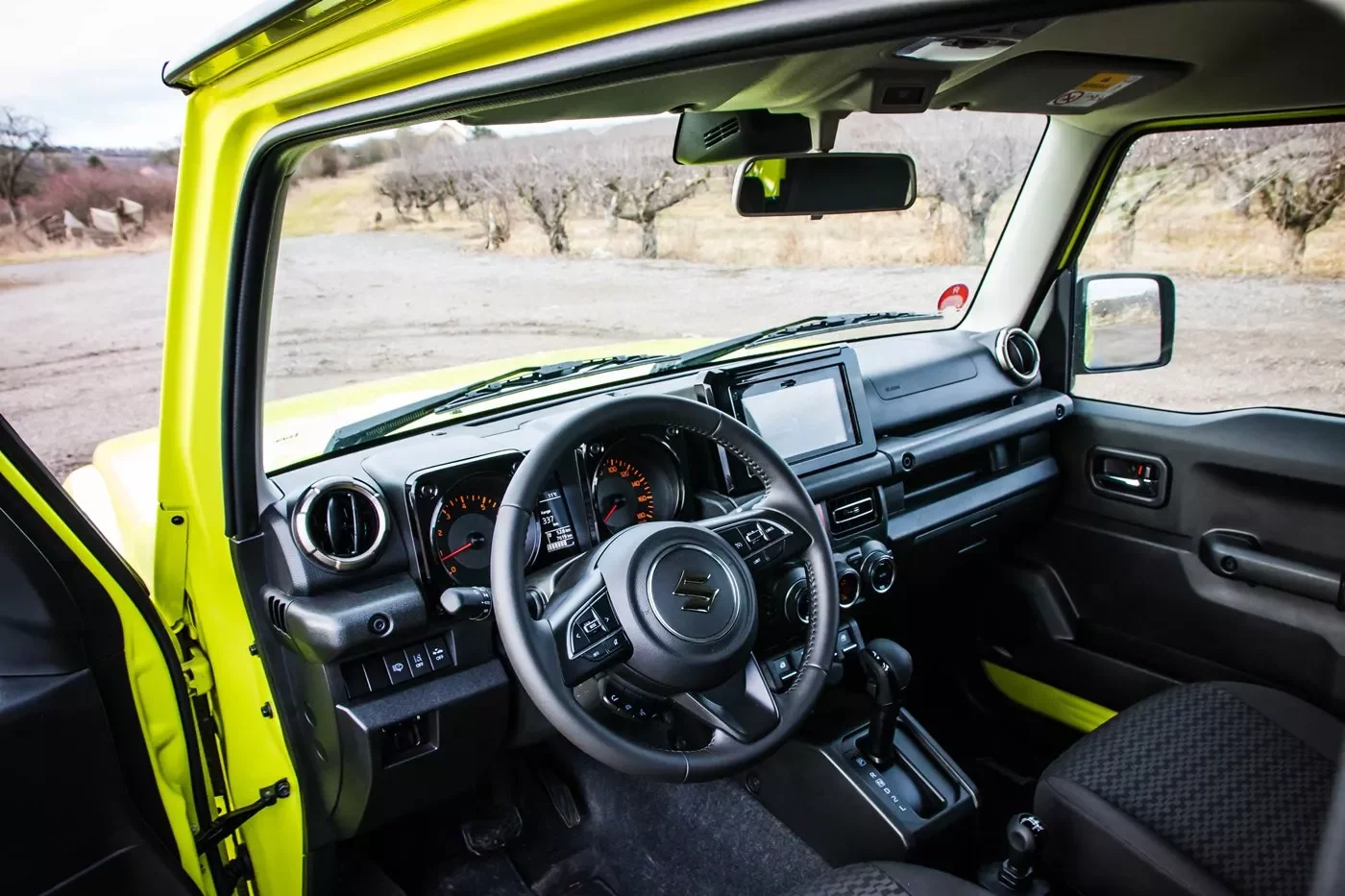 Jimny je malé, ale šikovné. Interiér je při pohledu na miniaturní rozměry karoserie příjemně prostorný, ale se zvednutými opěradly zadních sedadel nemá skoro žádný zavazadlový prostor. Za volantem, jehož moderní design se moc nehodí k celkovému retru, se sedí na měkkém sedadle trochu jako za stolem, kvůli čemuž Jimny není příliš komfortní na delší cestování. Ale už bylo dost povídání o tom, jak Jimny vypadá, takže otočme klíčkem ve spínací skříňce a pojďme se projet.