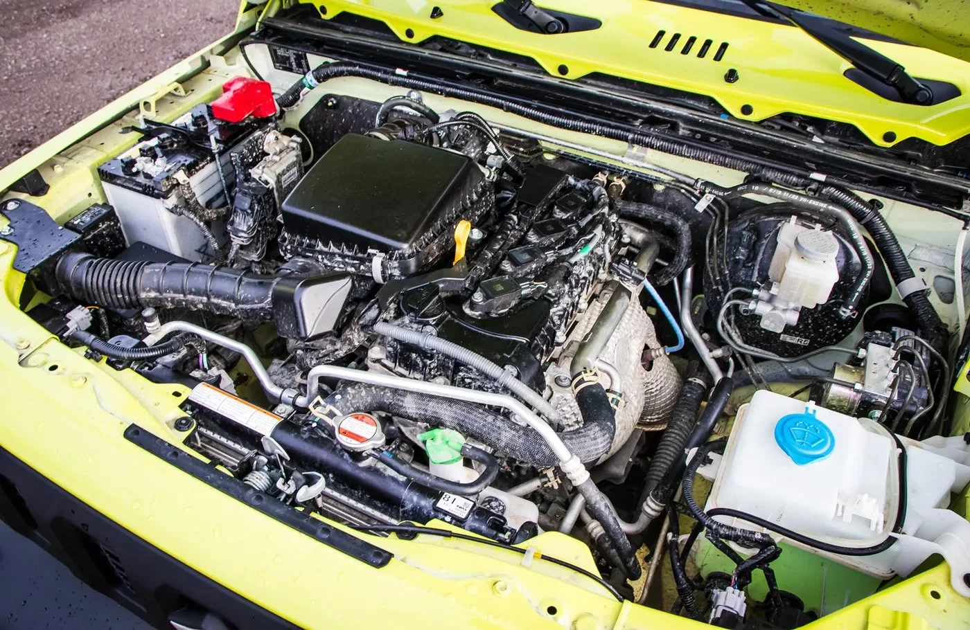 Ano, nejnovější Suzuki Jimny se stále startuje obyčejným klíčem a pod kapotou se probouzí motor podle nepsaných pravidel staré školy. Na japonském trhu si můžete koupit Jimny s turbodmychadlem přeplňovaným tříválcem o objemu 0,66 litru, ale na evropský trh se dodává výhradně s atmosférickou zážehovou čtyřválcovou patnáctistovkou VVTi o síle 102 koní při 6 000 ot./min. a 130 newtonmetrů při 4 000 ot./min. Takový motor bychom na poměry běžných moderních aut mohli považovat za slabý, ale s lehkým Jimny vážícím 1 185 kilogramů si umí poradit docela slušně.