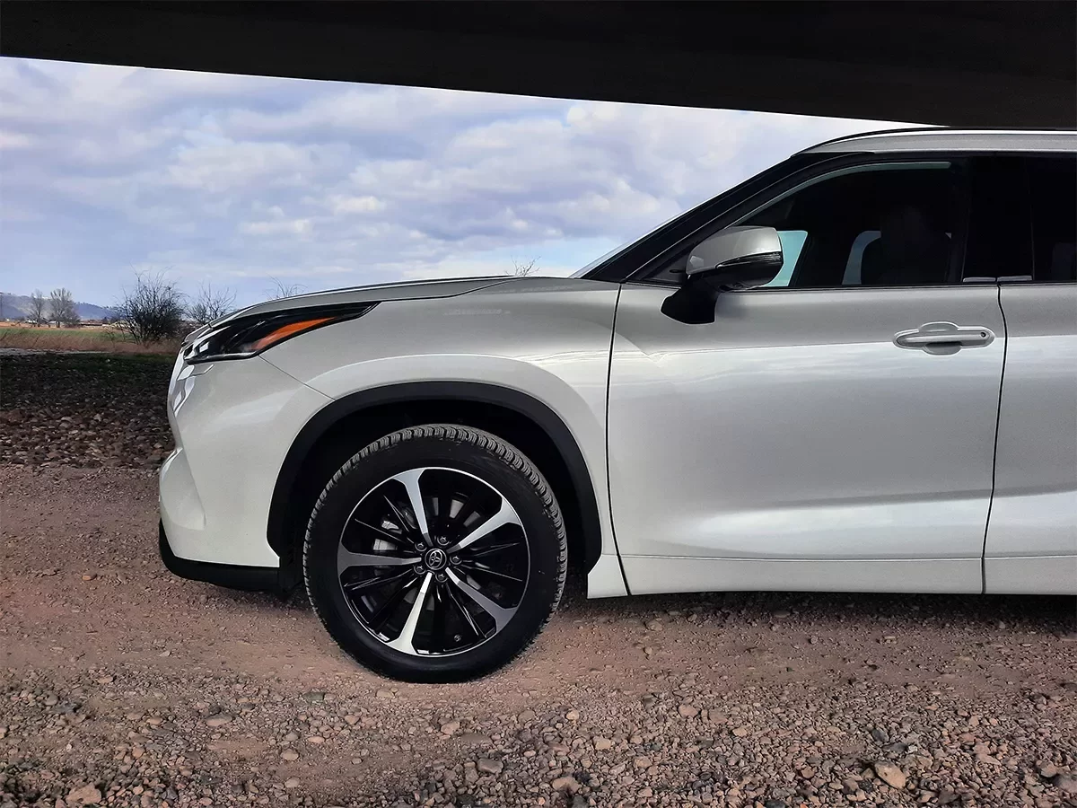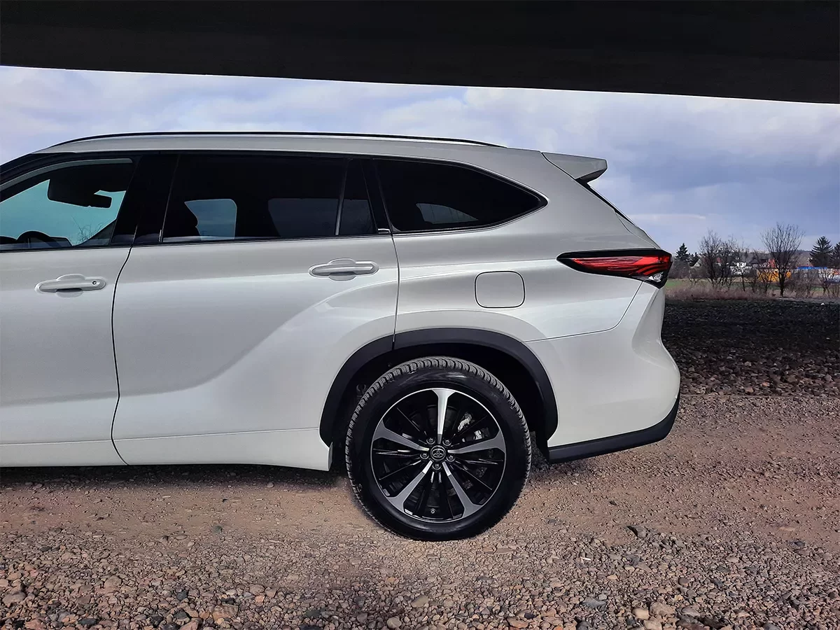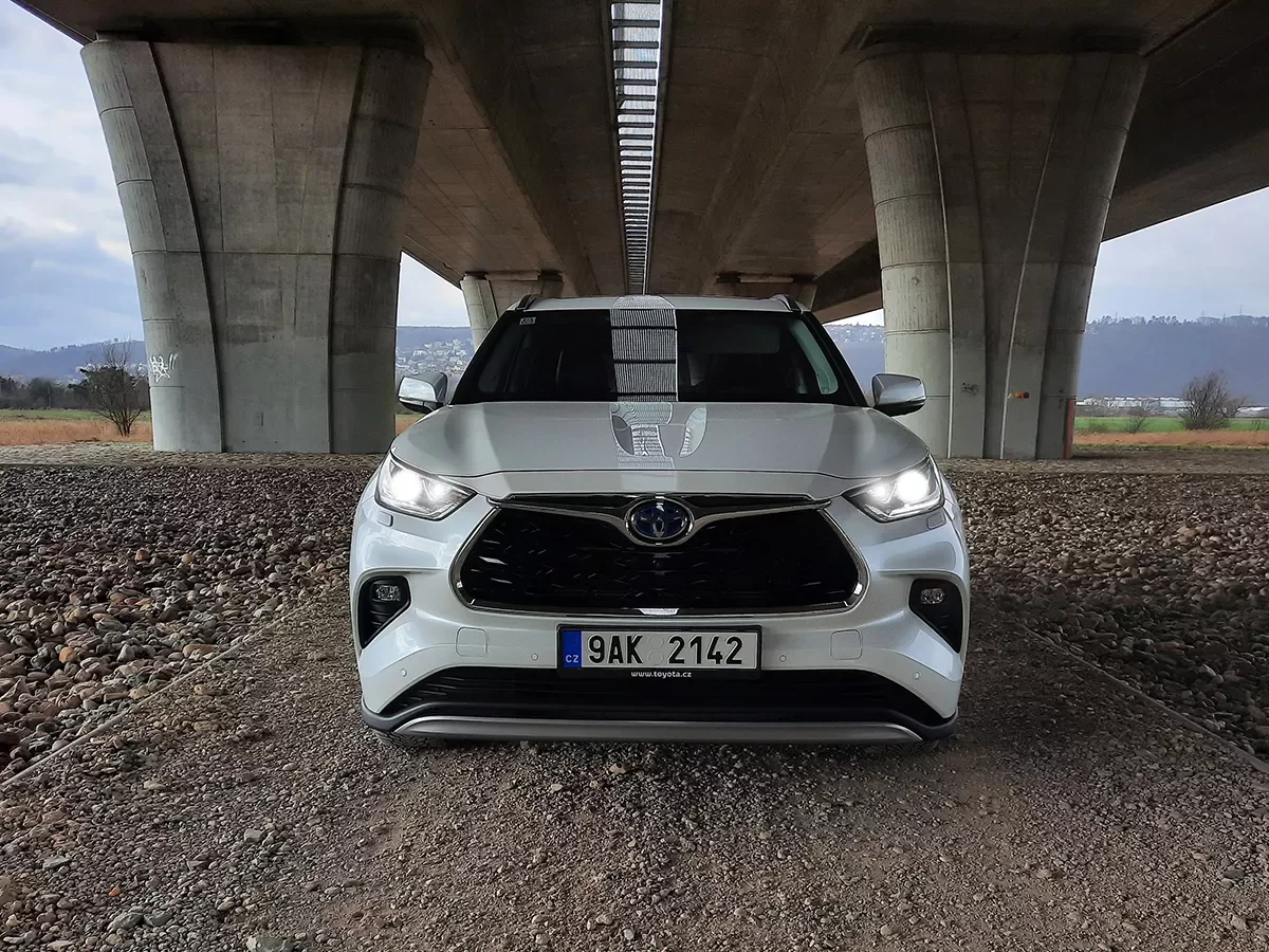 Designéři se vyřádili i na karoserii, která je výraznější, plná ostrých úhlů a záhybů. Předek Highlandera je poté vybaven velkou mřížkou s výrazným emblémem Toyota, která je usazena v jakési chromové obtékající lince. Mřížka je doplněna elegantními LED světlomety. Zároveň nesmím zapomenout na prolisy na přední kapotě.