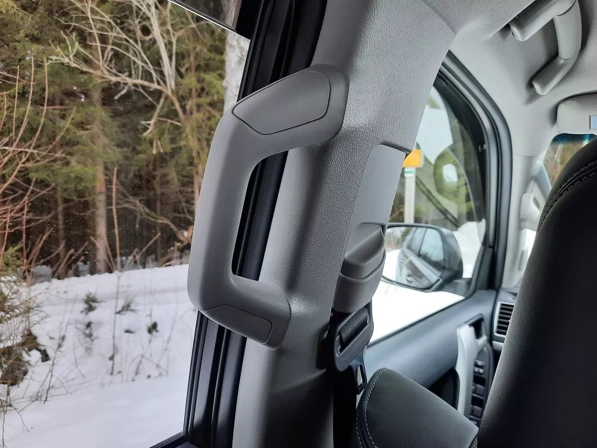 Pohodlně se usaďte a vítejte ve starém dobrém, samozřejmě voňavějším Land Cruiseru. Je tu setsakra dost místa (já ani nevím, jestli to mohu posuzovat, když mám 163 cm), hodně madel – miluju madla – chytneš se, kde můžeš a dávají prostě jakousi jistotu, a hlavně je tu „čudlíkový“ ráj. Je logické, že v terénním autě by dotyková tlačítka nebyla úplně praktická, ostatně, pokud chcete něco přepnout, může vám prst jednoduše sklouznout. V téhle Toyotě se ale snadno naučíte, že všechno má své tlačítko. Ať je to nastavení klimatizace, jízdní režimy nebo menu infotainmentu. Jen tedy tlačítko pro vyhřívání volantu mě svou pozicí, skrytou za volantem na přední desce, překvapilo a na první ani druhý pohled jsem ho neviděla, a objevila jsem ho, až s nepřirozeným vykloněním se do strany.