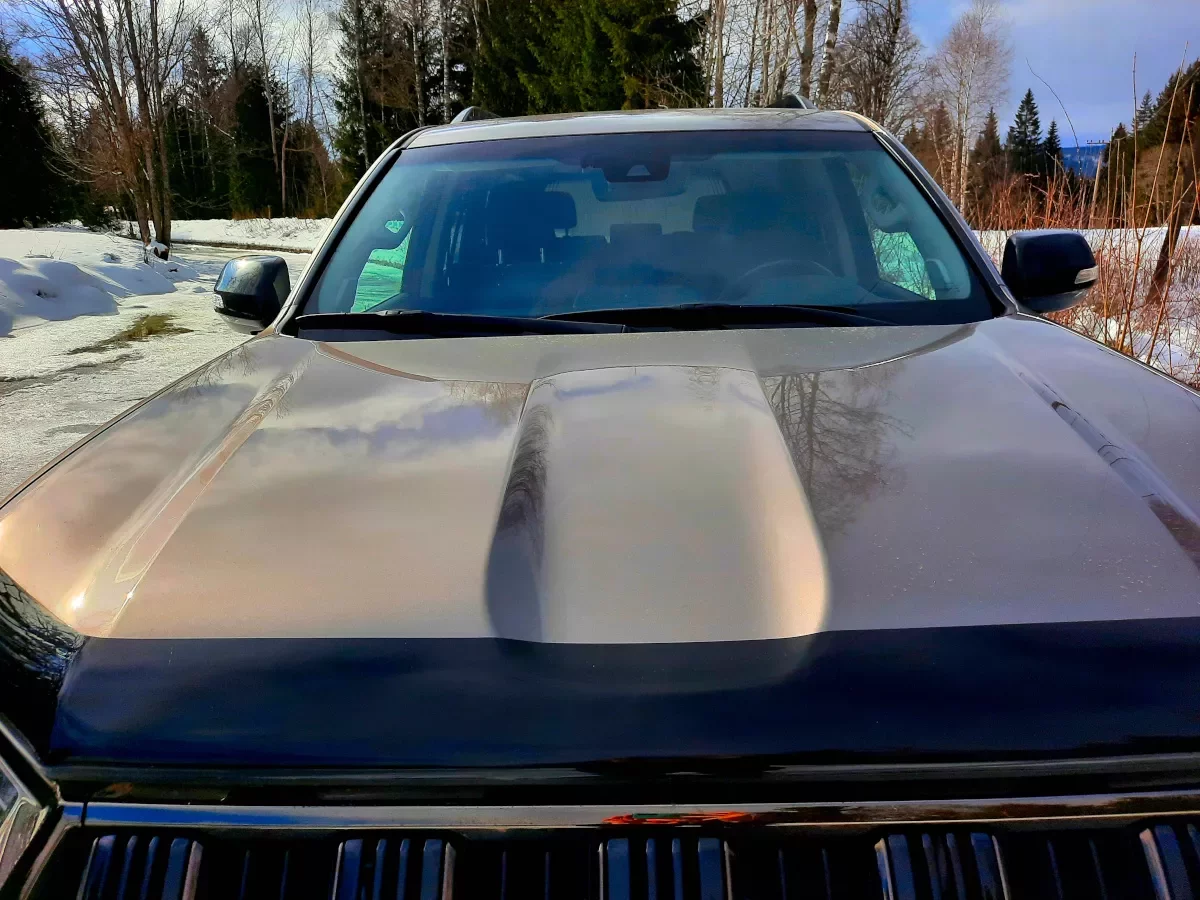 A Toyota Land Cruiser tohle splňuje na jedničku. Výrazně tvarovaná kapota doplněná černým deflektorem (ochranou proti odlétajícím kamínkům) hraje při prvním setkání s tímhle velikánem hlavní roli. Hned mám pocit, že takhle má reálné off-roadové auto vypadat. Protože jsem dostala testovací auto ve výbavě Executive, tedy té nejvyšší, měla jsem možnost se pokochat paketem Black. Jak z názvu vyplývá – hodně exteriérových prvků je zvoleno v černé barvě. Mřížka chladiče je kompletně v tmavém chromu, v černém provedení je i lemování kolem mlhovek, nechybí černě lakovaná zrcátka. To vše zasazené do bronzového barvy karoserie s názvem Avant Garde. Ladí to spolu neskutečně. Vytváří to pocit sice velkého pracanta, ale v elegantním hávu. Tuhle kombinaci já kvituji.