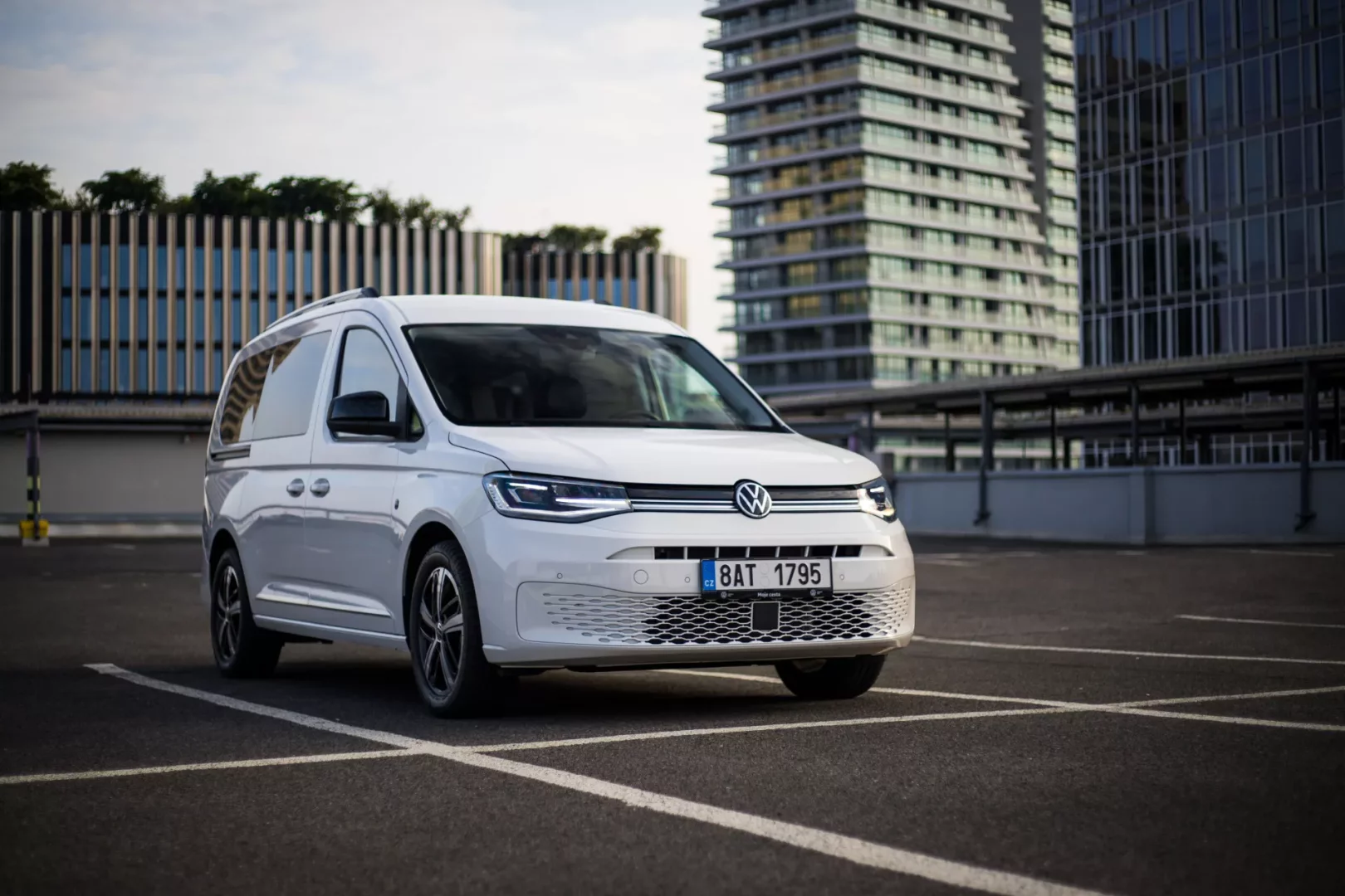 V naší bílé barvě kombinované s tmavými skly nedává Caddy Maxi znát vůbec užitkový původ, od francouzsko-japonského tria Citroën Berlingo/Peugeot Rifter/Toyota Proace City Verso je znát odstup a celkový dojem rozhodují i takové detaily jako třeba moderní LED světlomety. Ty Caddy umí a je to velký bonus stejně jako opravdu široká nabídka provedení.