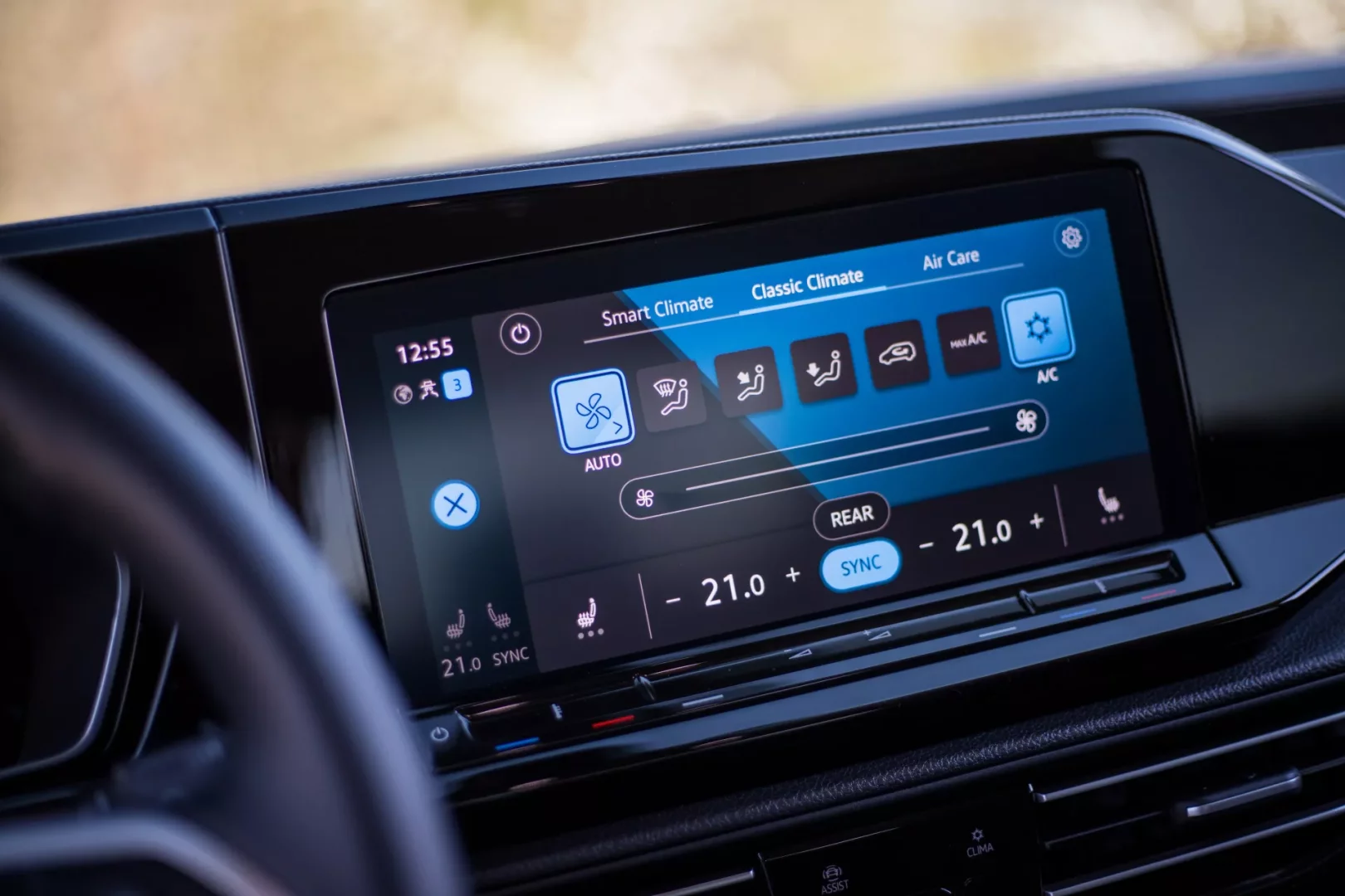 Pod ním najdete lištu ovládání teploty a hlasitosti, která nemusí všem vyhovovat. Pro jakoukoliv úpravu teploty či hlasitosti rádia na ni musíte sofistikovaně položit prst a potáhnout, a to bohužel neslyšně, bez jakékoli vibrační odezvy. Za jízdy to bohužel není moc ideální.