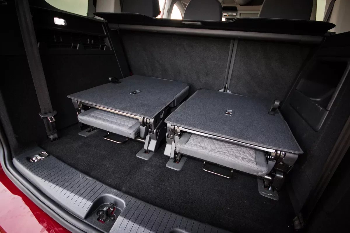 Takže s motorem spokojenost, stejně tak i uvnitř. Caddy nabízí spoustu prostoru. Posádka vpředu může jezdit i s kouzelnickým kloboukem na hlavě a dost místa je i na roztažená kolena. Ve druhé řadě sedadel je akorát místa do šířky, že se tři cestující vyloženě mačkat nebudou, a třetí řadu mohou bez újmy vyzkoušet i dospělí.