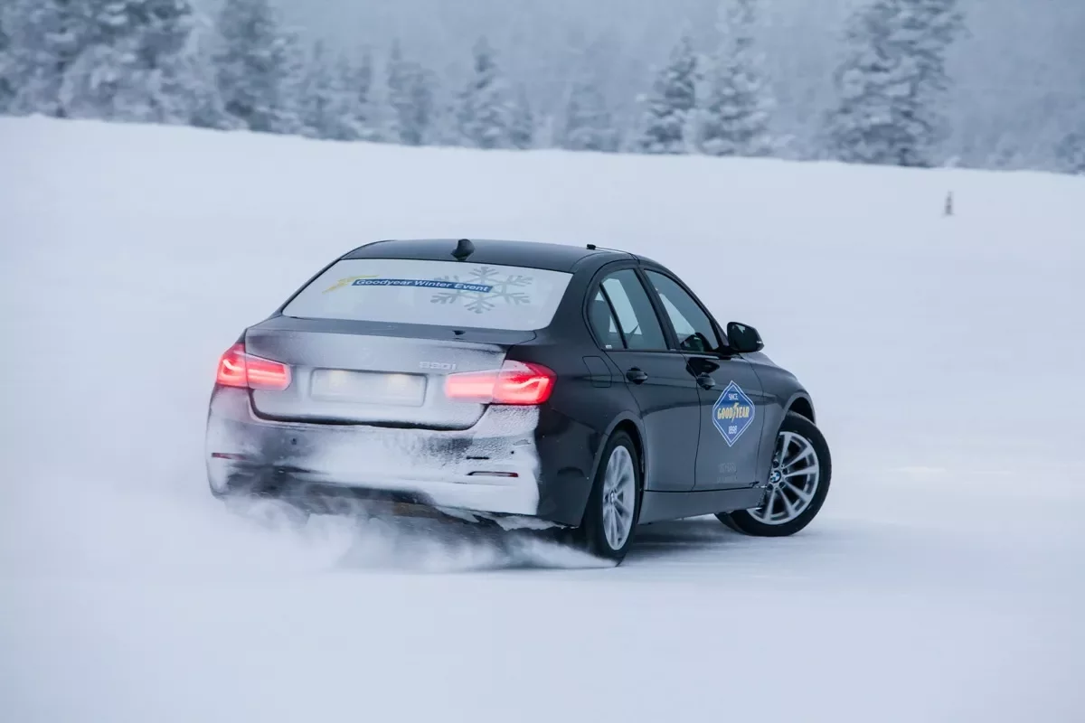 Menší povyražení si testovací piloti užívají při první ukázce funkce zimních pneumatik Goodyear UltraGrip Performance SUV, které výrobce představil roku 2016. Díky rostoucí popularitě segmentu SUV musel Goodyear pochopitelně odpovědět rozšířenou nabídkou. Vyšší stavba a hmotnost totiž kladou na pneumatiky úplně jiné nároky. A skutečně, na zasněžené úzké cestičce, po které mě veze testovací jezdec slušným kalupem, se relativně velké BMW X3 za doprovodu mírných driftíků protahuje s naprostou jistotou.