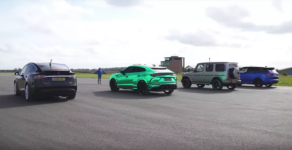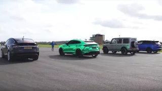 Těžká váha na dragstripu: Vyhraje Tesla X, Lambo Urus, Mercedes G63 AMG nebo Range Sport SVR?