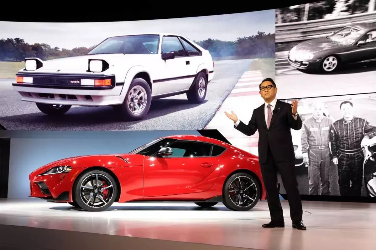 Když se v roce 2009 stal prezidentem koncernu, omezil počet svých startů na čtyři ročně. Závodění však zůstává jeho vášní, což se projevuje přibývajícími sportovními modely v nabídce Toyoty. První takové auto, které sjelo z výrobní linky pod jeho vedením, je Toyota GT86, dlouhá léta oblíbený vůz Akia Toyody. Nyní její místo nepochybně zaujme nová Supra.