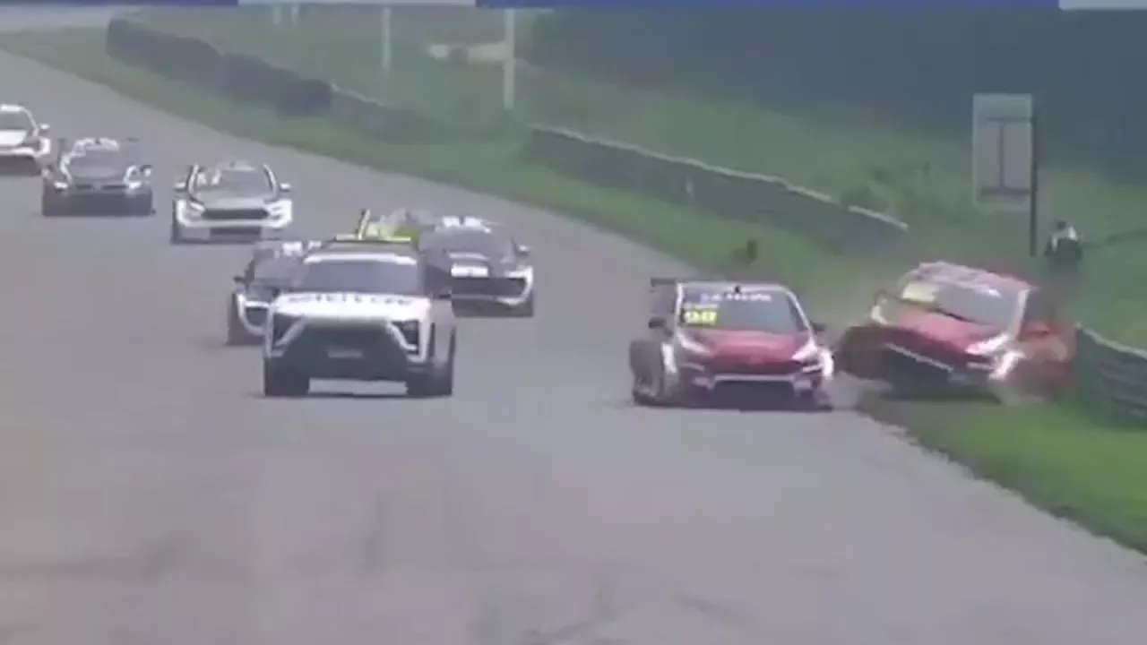 Stalo se tak v čínských závodech cestovních speciálů CTCC a marně přemýšlíme nad tím, jestli dotyčný nekoukal do zpětného zrcátka nebo prostě jen hekticky uposlechl příkazů z vysílačky. Faktem ale je, že na trať vyjel v ten nejméně vhodný okamžik, prakticky přímo před blížící se závodní auta. Musel je vidět, ale místo toho, aby okamžitě šlápl na plyn, zrychlil a pilotům závodních aut tak dal možnost zpomalit, prostě je zablokoval.
