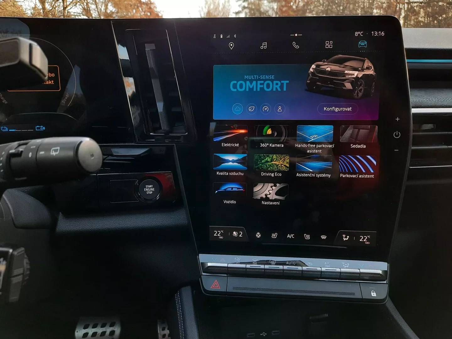 Ovládání klimatizace zůstává na fyzických spínačích, které dáváte dolů nebo nahoru v případě změny teploty nebo regulace foukání větráků. Dotykově ale ovládáte například zapnutí vyhřívání sedaček nebo volantu. Obojí je příjemné, nikterak mi nevadilo a vlastně mě to i svým způsobem těšilo. Co prošlo velkou modernizací je 360stupňová kamera, která opravdu pěkně vykresluje hlavně v módu panoramatickém.