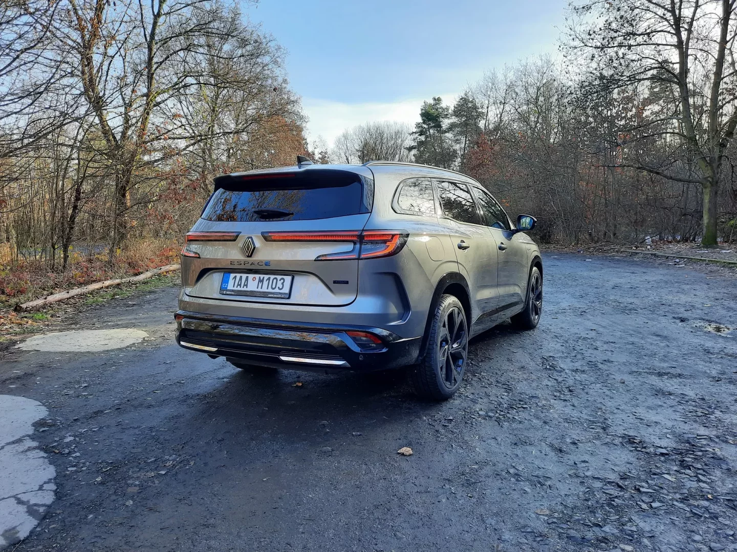 Vizuální proměna modelu je asi celkem jasná. Nese se v duchu tzv. Renaulution (vážně je to reálné slovo). Díky platformě CMF-CD, kterou sdílí s Australem, je tenhle SUV o 32 mm nižší a o 215 kg lehčí než jeho předchůdce. Více než polovina udávaného snížení hmotnosti je i přes zachovanou prostornost dosažena menšími rozměry, zbytek je především zásluhou plně hybridního pohonu. Celkově to znamená, že se s ním jednodušeji manipuluje, což mohu potvrdit – řízení a váha jsou tak lehké, že se vám z něj nebude chtít vystoupit. Zároveň francouzi vylepšili aerodynamiku díky novému tvaru zrcátek, poslali do sklonu i střechu a dali do zadního nárazníku průduchy. Všechny tyto atributy, ač vám, jako normálním uživatelům, nebudou k ničemu, vylepšují celkové vlastnosti auta. Líbí se mi nově tvarovaná maska, stejně jako přední i zadní světlomety, které sahají až doprostřed k nápisu Espace. Prostě to auto dostalo do vínku fakt milý vzhled – nenápadně nápadný, řekla bych.