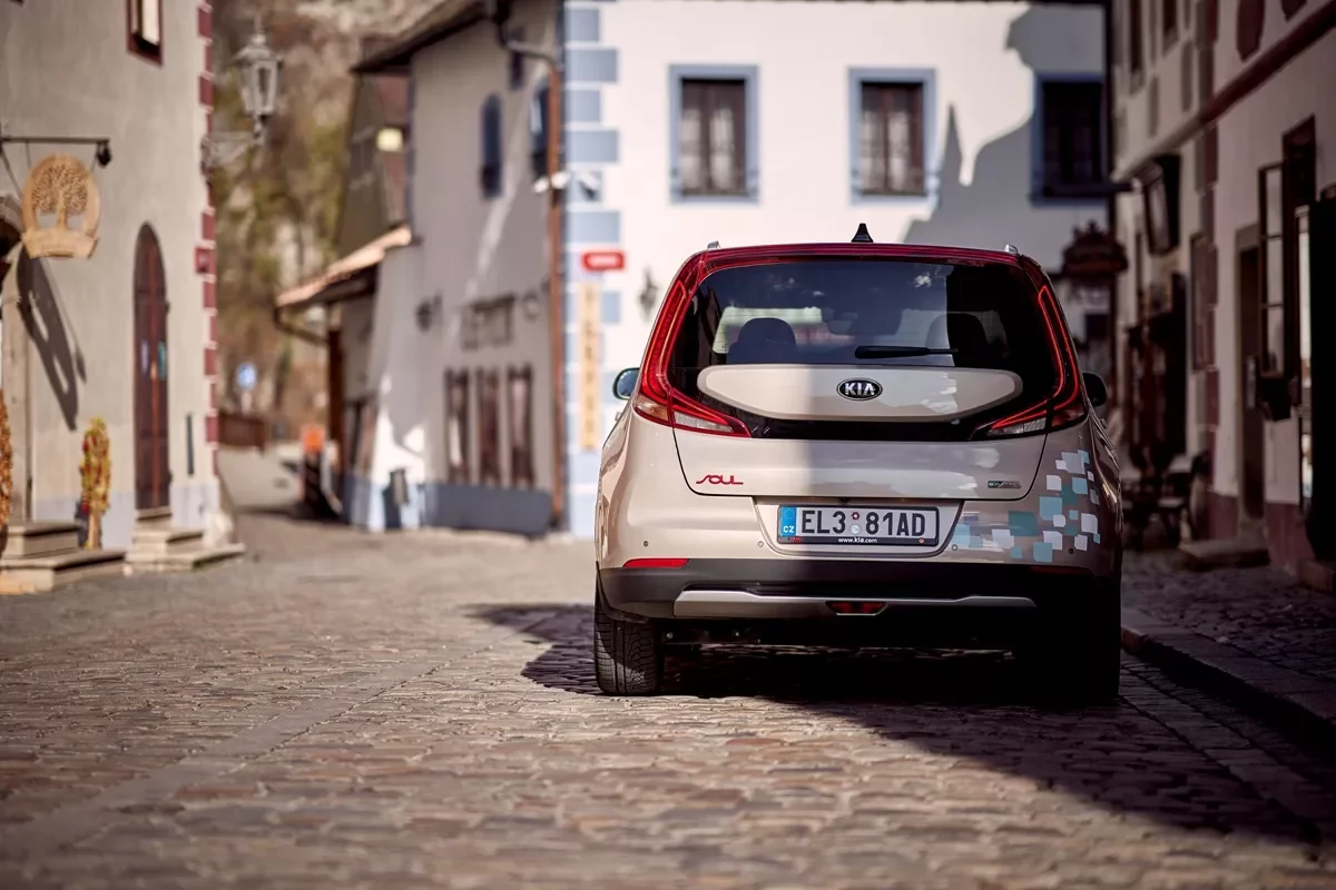 Uličkami Českého Krumlova v elektrické Kie e-Soul