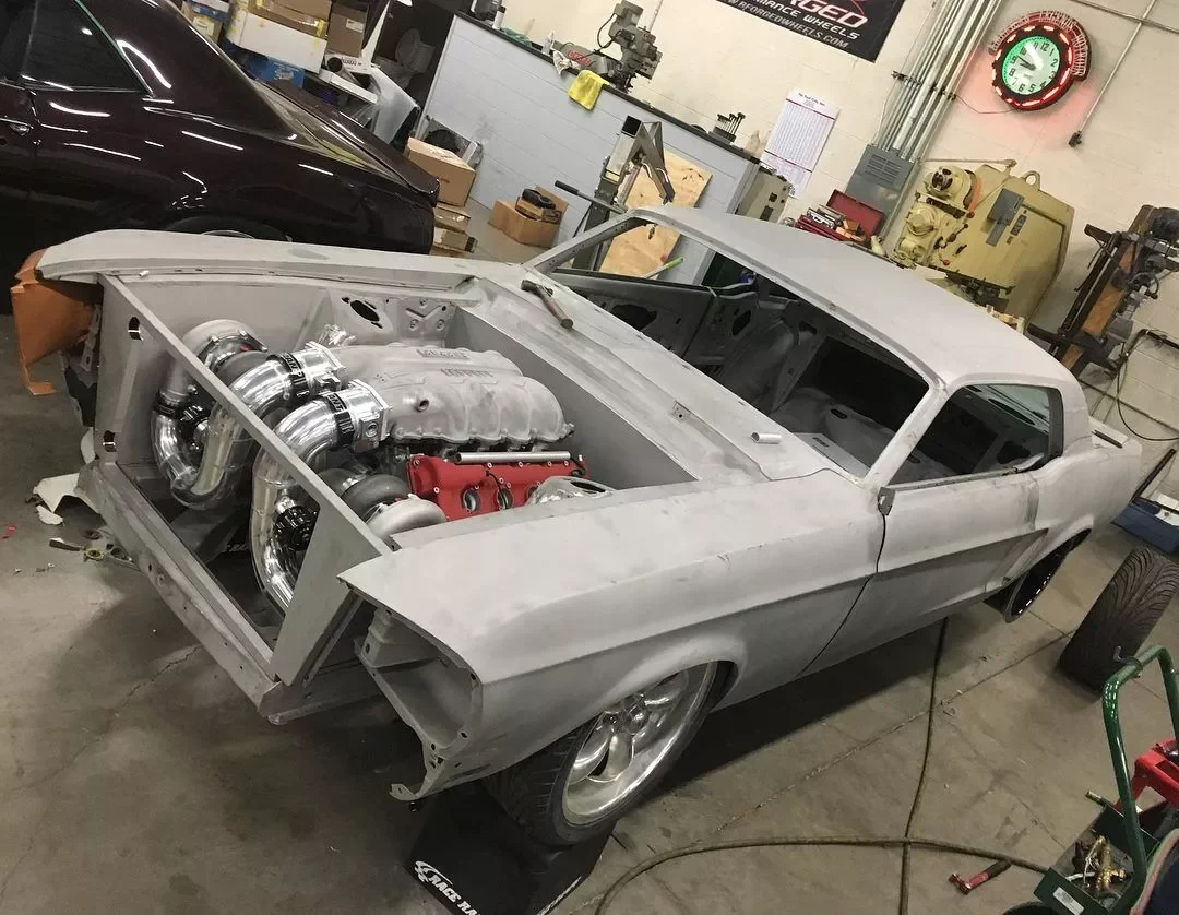 V rámci stavby musel původní motor uvolnit místo novému, měnil se sice osmiválec za osmiválec, ale potenciál toho nového je s tím původním nesrovnatelný. Nově bude tento mustang pohánět agregát z Ferrari F430, vybaven byl ale dodatečně dvojitým přeplňováním či sáním z modelu Ferrari California. Samotný motor musel být ale také upraven, protože na rozdíl od původního umístění se bude nyní nacházet vpředu. Práce tak na mustangu bude opravdu hodně... Neskončí to ale pouhou výměnou motoru, pokračovat se bude dále. Pohon zadních kol zůstane, výkon se sem ale bude přenášet přes novou převodovku. Půjde o manuální šestistupňovou skříň T56.