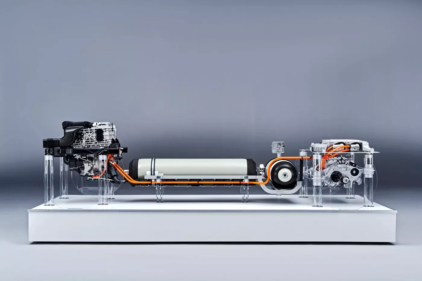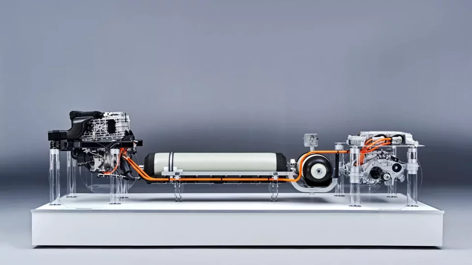Pod palivovým článkem je umístěn elektrický měnič, který upravuje napětí tak, aby jím byl poháněn elektrický motor a přebytky zadržela baterie. Ta je nabíjena rekuperací kinetické energie a současně právě elektřinou z palivových článků. Vozidlo disponuje také dvojicí nádrží s tlakem 700 bar, které společně pojmou šest kilogramů vodíku. „Tato zásoba zajišťuje dlouhý dojezd bez ohledu na klimatické podmínky,“ dodává Guldner. „Doplnění paliva navíc zabere jen asi tři až čtyři minuty.“