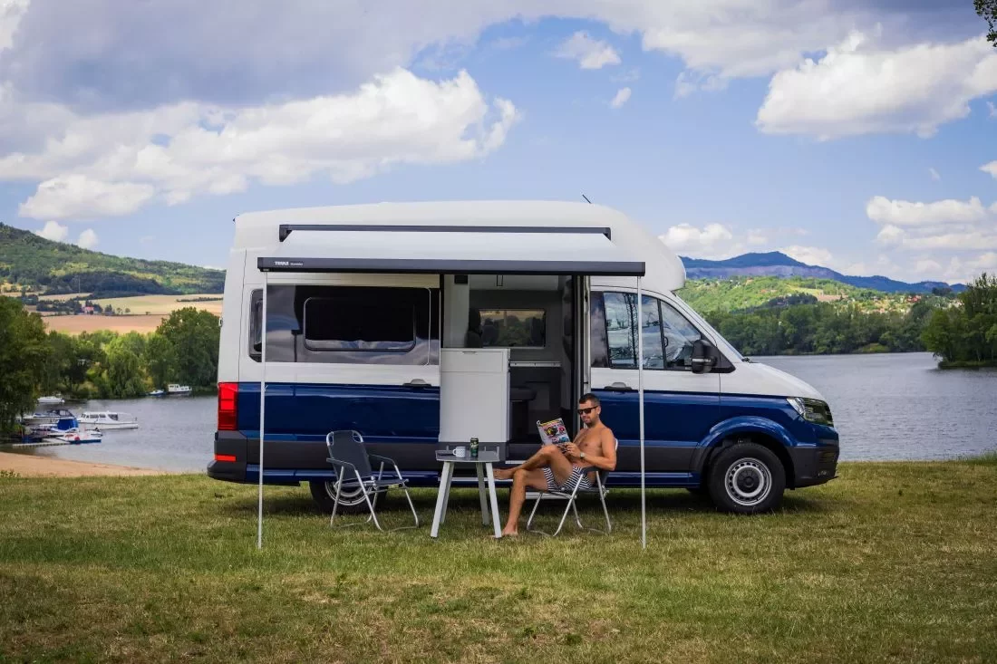 V nich jsou pak praktické kapsy na zahradní stolek a dvě skládací židličky. To jsou přesně ty chytře vymyšlené detaily, které na všech Californiích miluju. Skvělé jsou i síťky proti hmyzu v oknech a bočních šoupačkách nebo dlouhý LED pás, který krásně osvítí prostor pod markýzou.