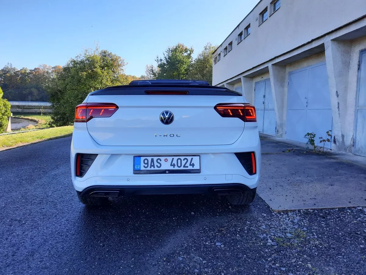 I svítilny vzadu dostaly nový háv a tónované kryty, ale jinak zůstává T-Roc stále vizuálně podobný. Jasně, pokud si zvolíte výbavu R-line, jako jsem měla v testu já, dočkáte se specifického nárazníku ve stylu verze R, který bude lakovaný v barvě vozu – v mém případě tedy bíle.