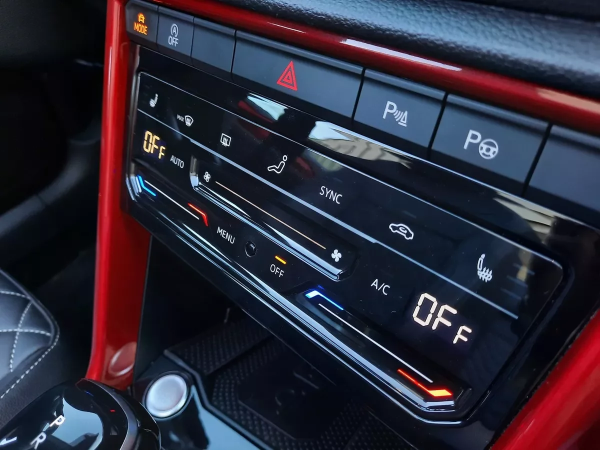 Změn se uvnitř odehrálo více než venku. Především se musíte potýkat s dotykovými ploškami pro volbu/nastavení klimatizace a pianinově černou plochou, která je doplněna akcentující červenou. Rozumím, že se VW snaží jít s dobou, ale cabrio by si zasloužilo fyzická tlačítka. A proč? Proč ne. Jsou jistější na dotek. Jinak v interiéru hezky vystupuje prošívání na sedačkách, které je doplněné emblémem R na opěrkách, což dává autu sportovnější nádech. Na sklopení střechy tu naštěstí zůstala jakási minipáčka, stejně tak na otevření všech oken. To je za mě pro VW velká chvála, však už víte… Stejně tak mohu pět ódu na tlačítka vypnutí start/stop, volbu jízdního režimu nebo spuštění výstražných světel. Pro chválu nejdu daleko ani v případě voliče automatické převodovky, protože to není jen tak malá páčka, ale pořádná páka.