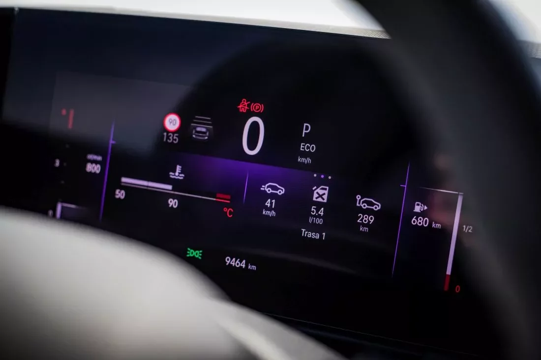 Že je Astra konvenční ještě neznamená, aby zůstávala pozadu. Palubní desce dominuje široký panel, v němž je umístněný jak displej digitálních přístrojů, tak obrazovka multimédií. Hezky podle současných trendů.
