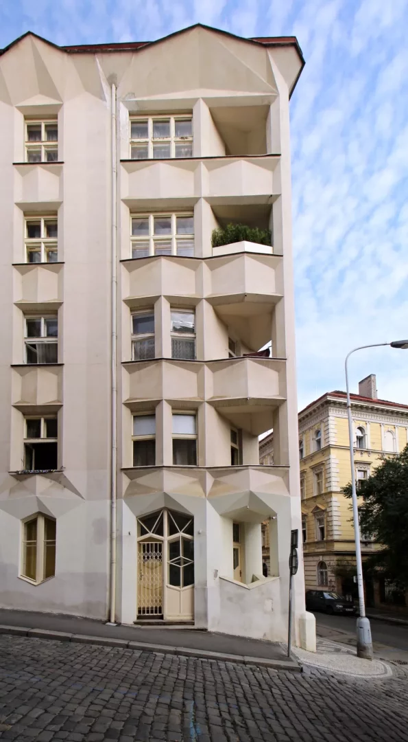 V kubistickém slohu nevznikaly jen paláce a luxusní vily tehdejší smetánky, ale také činžovní domy. Jedním z nemnoha je rohový činžák v ulici Neklanova 30, který nese také název Hodkův činžovní dům. Opět je autorem Josef Chochol a vznikl roku 1914. Stojí nedaleko dvou předchozích kubistických vil, takže je můžete všechny navštívit na jeden zátah.