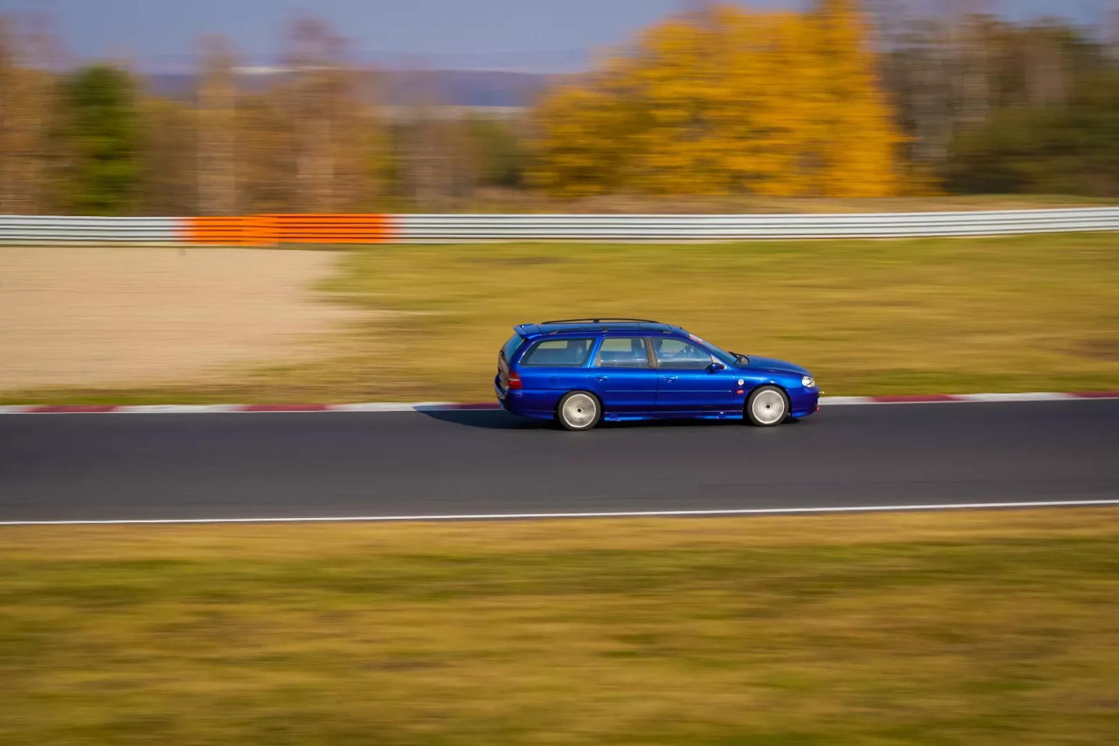 Mondeo ST200 těsně zapadlo do rychlejší ze dvou kategorií, kde proti nám stály dva Caterhamy, BMW M3 a M4, dvě AMG A45, GR Yaris a spousta pořádně potuněných aut, třeba divoká Škoda Fabia RS 1.9 TDI nafoukaná snad na 220 koní. V téhle konkurenci jsme neměli nejmenší šanci, takže jsme závod pojali spíš jako testování auta a sbírání zkušeností.